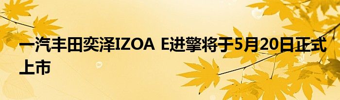 日前,我們了解到,一汽豐田奕澤IZOA E進擎將于5月20日正式上市,作為一汽豐田首款純電動SUV,新車NEDC工況下的續航里程為400km。
