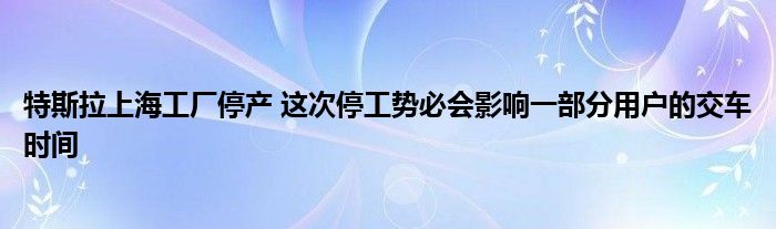 關于到現在特斯拉上海工廠停產 這次停工勢必會影響一部分用戶的交車時間這個話題,相信很多小伙伴都是非常有興趣了解的吧,因為這個話題也是近期非常火熱的,那么既然現在大家都想要知道特斯拉上海工廠停產 這次停工勢必會影響一部分用戶的交車時間,小編也是到網上收集了一些與特斯拉上海工廠停產 這次停工勢必會影響一部分用戶的交車時間相關的信息,那么下面分享給大家一起了解下吧。