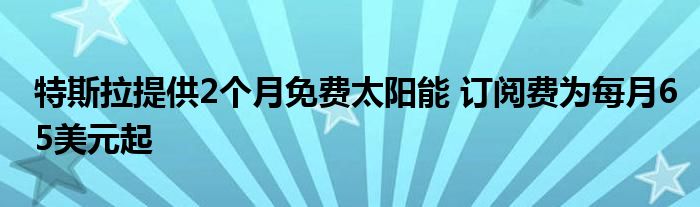 特斯拉向簽署新家庭太陽能訂閱計(jì)劃的人們贈(zèng)送2個(gè)月的免費(fèi)太陽能,該計(jì)劃在加利福尼亞州的起價(jià)僅為每月65美元。