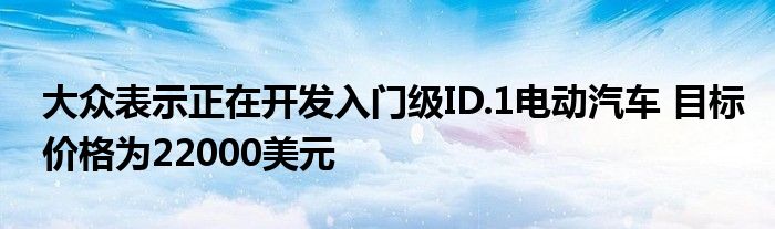 小編發現不少朋友對于 大眾表示正在開發入門級ID.1電動汽車 目標價格為22000美元這方面的信息都比較感興趣,小編就針對 大眾表示正在開發入門級ID.1電動汽車 目標價格為22000美元整理了一些相關方面的信息 在這里分享給大家。