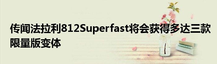 傳聞法拉利812 Superfast將會獲得多達三款限量版變體,據報道其中一種可能最早在9月13日問世。Ferrari車主論壇Ferrari Chat的多個用戶聲稱擁有有關車輛的內部信息。一個人特別聲稱有三輛基于812 Superfast的超級跑車正在行駛:帶可拆卸Targa車頂板的812 Aperta,“鐵桿” 812蒙扎和沒有分鐘擋風玻璃且沒有車頂的類似Speedster的812。
