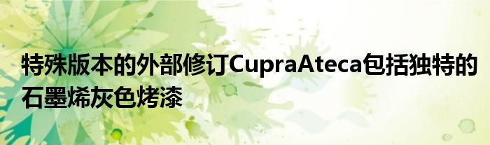 Cupra在今年的日內瓦車展上發布了Ateca SUV的特別版。該模型具有一系列樣式更新和新的運動型排氣裝置,預計將于2019年底開始小批量生產,并于今年晚些時候開始接受訂單。特殊版本的外部修訂 Cupra Ateca包括獨特的石墨烯灰色烤漆,更寬的20英寸合金輪轂,獨家的銅色Cupra品牌貼花,Brembo制動器,Akrapoviç排氣系統,更大的注入銅的碳纖維機翼和碳纖維車??門后視鏡。