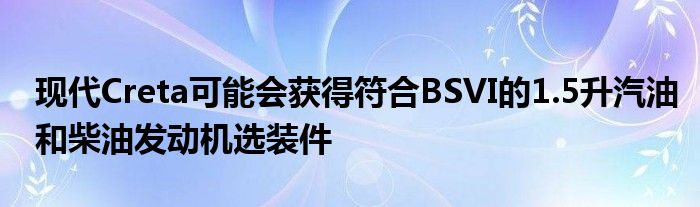 據(jù)媒體報(bào)道,第二代現(xiàn)代Creta可能會(huì)獲得符合BS-VI的1.5升汽油和柴油發(fā)動(dòng)機(jī)選裝件,以取代目前的1.4升,1.6升柴油和1.6升汽油發(fā)動(dòng)機(jī)。