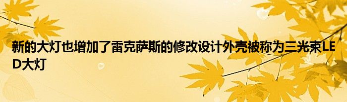 新的大燈也增加了雷克薩斯的修改設計。外殼被稱為“三光束” LED大燈,外殼變得更緊湊,更運動,可以與“捏緊”的面板一起流動。RX尾部的變化遠沒有那么明顯,盡管通過從頂部到底部翻轉外殼的紅色和透明部分改變了尾燈。