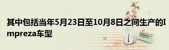 召回將影響到2008年在生產的7,412輛汽車,其中包括當年5月23日至10月8日之間生產的Impreza車型,5月22日至11月13日之間生產的Forester車型以及6月4日至10月18日之間生產的Legacy車型。質量監督檢驗檢疫總局發布的聲明。