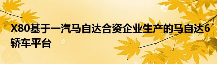X80將由馬自達(dá)(Mazda)生產(chǎn)的2.0和2.3升四缸發(fā)動機(jī)提供動力,與6速手動或5速自動配對。價(jià)格將在130.000人民幣左右開始。X80是在2011年上海車展上首次亮相的一汽X-Concept的基礎(chǔ)上進(jìn)行設(shè)計(jì)的。