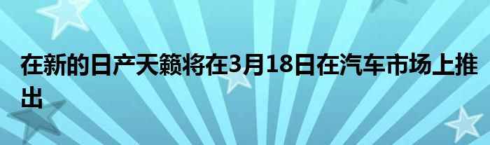 在新的日產(chǎn)天籟將在3月18日在汽車市場(chǎng)上推出,價(jià)格將圍繞190.000元和周圍結(jié)束230.000元。新的日產(chǎn)天na與新的2013年規(guī)格日產(chǎn)Altima基本相同。僅限的天Tea將在10月推出。