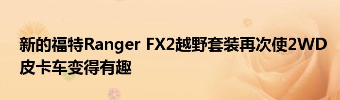 福特Ranger營銷經理Brian Bell表示:“ FX2通過鎖定差速器的功能為想要強悍越野風格的客戶提供了Ranger的選擇,”