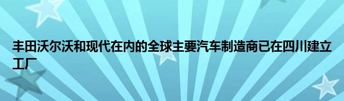 包括豐田,沃爾沃和現(xiàn)代在內(nèi)的全球主要汽車制造商已在四川建立工廠。