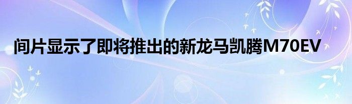 間片 顯示了即將推出的新龍馬凱騰M70 EV,這是一款基于汽油動力的新龍馬凱騰M70的電動小型貨車。凱騰M70 EV由可提供約50馬力的電動機驅動,并與鋰離子電池配對。射程為190公里,充滿電需要8個小時。