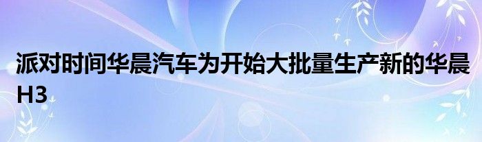 派對時間華晨汽車為開始大批量生產新的華晨H3,前身為華晨F20。H3是一款外觀漂亮的運動型轎車,它將在的汽車市場中首發,以取代陳舊的華晨H330。