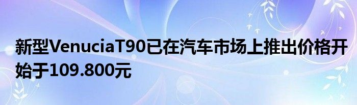 新型Venucia T90已在汽車市場上推出。價格開始于109.800元,結束于154.800元。T90是Venucia品牌的新旗艦,它是2015 Venucia Vow概念車的量產版本。T90具有大膽的線條和風格,這是一款跨界SUV轎跑車,很難輕易地融入單個細分市場。