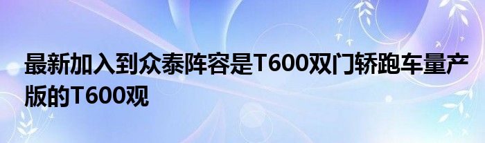 眾泰效仿哈瓦爾(Haval)的榜樣,推出了越來越多的現有汽車變體和變體,所有這些都基于具有相同引擎和幾乎相同價格點的相同平臺。最新加入到眾泰陣容是T600雙門轎跑車,量產版的T600觀。它基于眾泰T600。不應與T600 Sport混淆,后者是T600的運動版。T600 Coupe也是T600的運動版,但具有額外的獨特設計。最引人注目的是在前部配備了新的燈光和新的格柵,以及在完全不同的D柱上。