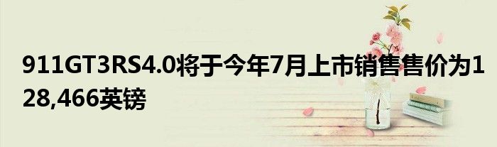 911 GT3 RS 4.0將于今年7月上市銷售,售價為128,466英鎊。
