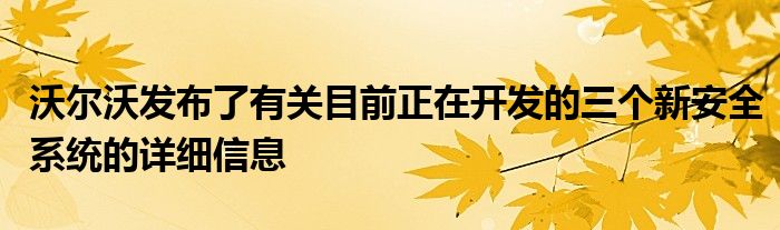 近期涉及沃爾沃發(fā)布了有關目前正在開發(fā)的三個新安全系統(tǒng)的詳細信息內(nèi)容備受矚目,很多讀者對此也很有興趣,現(xiàn)在給大家羅列關于沃爾沃發(fā)布了有關目前正在開發(fā)的三個新安全系統(tǒng)的詳細信息最新消息。