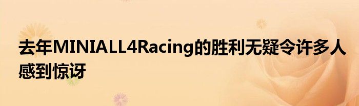 近期涉及去年MINIALL4Racing的勝利無(wú)疑令許多人感到驚訝內(nèi)容備受矚目,很多讀者對(duì)此也很有興趣,現(xiàn)在給大家羅列關(guān)于去年MINIALL4Racing的勝利無(wú)疑令許多人感到驚訝最新消息。
