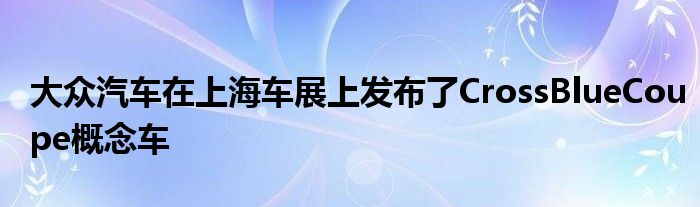 近期涉及大眾汽車在上海車展上發布了CrossBlueCoupe概念車內容備受矚目,很多讀者對此也很有興趣,現在給大家羅列關于大眾汽車在上海車展上發布了CrossBlueCoupe概念車最新消息。