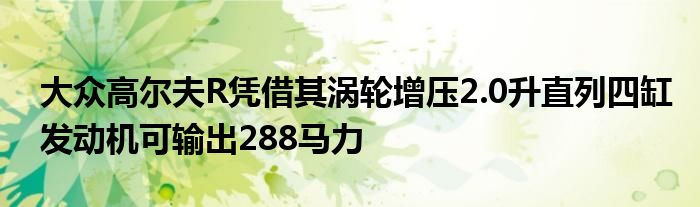 全新的 大眾高爾夫R憑借其渦輪增壓2.0升直列四缸發動機可輸出288馬力。這款極為罕見的新甲殼蟲RSI擁有Rotrex C30增壓3.2升VR-6的聲稱320 hp的功率,通常可提供非常可觀的221 hp和236 lb-ft的扭矩。由于大眾只制造了317個賽車和公路樣車,這已經非常罕見了,新甲殼蟲RSI與第四代Golf R32共享了動力,后者是Golf R的前身。