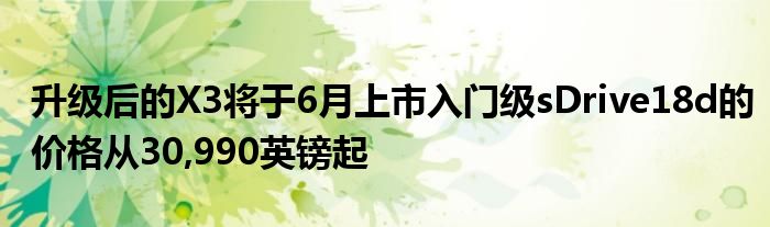 升級后的X3將于6月上市,入門級sDrive18d的價格從30,990英鎊起。