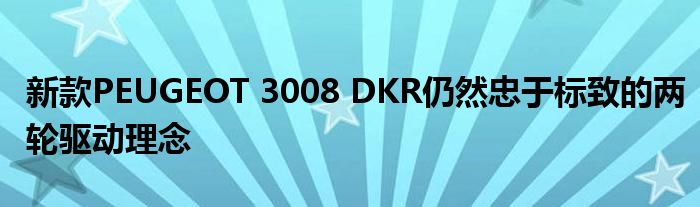 新款PEUGEOT 3008 DKR仍然忠于標致的兩輪驅動理念,九個月前的15年來,達喀爾首次贏得了兩輪驅動汽車的冠軍,證明您不一定需要四輪驅動來征服最艱難的景觀在世界上。