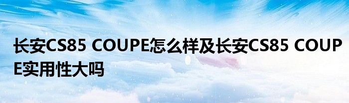 CS85 COUPE帶來人車“默契”