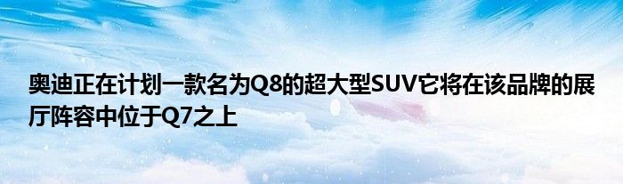 奧迪正在計劃一款名為“ Q8”的超大型SUV,它將在該品牌的展廳陣容中位于Q7之上。據報道,該首席執行官已確認開發正在進行中。奧迪首席執行官魯珀特·斯塔德勒(Rupert Stadler)最近在接受彭博社采訪時表示,新車型將在2020年首次亮相。據了解,該車型正在計劃中,以在對大型SUV需求旺盛的市場(即和)上提高品牌銷量。