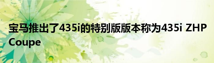 寶馬推出了435i的特別版版本,稱為435i ZHP Coupe,以向同名E46 3系列特別版致敬。ZHP版本進行了各種調整和增強,主要包括對引擎的更改。寶馬增加了M Performance進氣單元,并安裝了優化的發動機計算機,可將輸出功率從225kW和400Nm提升到250kW和450Nm。
