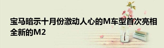 寶馬似乎正在為將于10月14日發布的BMW M2做準備,該公司在其德國Facebook頁面上發布了預告片。伴隨著相當模糊的圖像的是一些將德語翻譯成英語的文本,說:“熱情洋溢的表演。期待一個激動人心的十月!”
