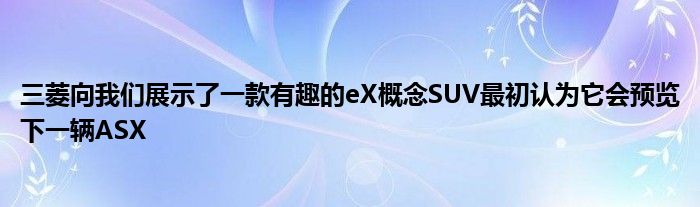 在東京車展上,三菱向我們展示了一款有趣的eX概念SUV。最初認(rèn)為它會(huì)預(yù)覽下一輛ASX,但是據(jù)報(bào)道,它會(huì)預(yù)覽一輛全新的SUV,該SUV最終將在不久的將來出現(xiàn)在ASX和Outlander之間。