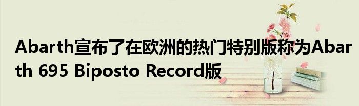 Abarth宣布了在歐洲的熱門特別版,稱為Abarth 695 Biposto Record版。它旨在慶祝公司創始人Carlo Abarth創造世界紀錄的50周年???middot;阿巴特(Carlo Abarth)于1965年在的蒙扎賽道(Monza)駕駛G級賽車取得了加速記錄。作為致敬,基于695 Fiat 500的特殊Biposto具有獨特的摩德納黃色外觀主題,與碳纖維元素形成鮮明對比。