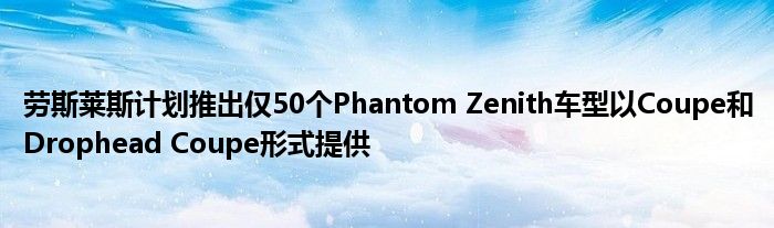 在此之前,勞斯萊斯計劃在2018年推出僅50個Phantom Zenith車型。它將以Coupe和Drophead Coupe形式提供,并且將是當前要制造的最新模型。