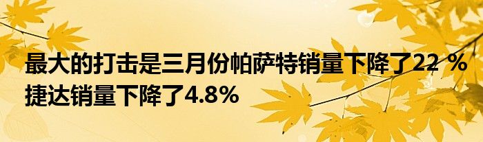 最大的打擊是三月份帕薩特銷量下降了22 %,捷達(dá)銷量下降了4.8%。這兩款車均配備了TDI柴油發(fā)動(dòng)機(jī),現(xiàn)已更新以符合排放法規(guī)。