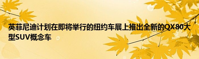 英菲尼迪計劃在即將舉行的紐約車展上推出全新的QX80大型SUV概念車,并可能預覽下一代車型。該QX80是英菲尼迪最大的SUV,基于日產巡邏。它也被稱為市場上最怪異的SUV之一,具有獨特的類似犀牛的前端設計。