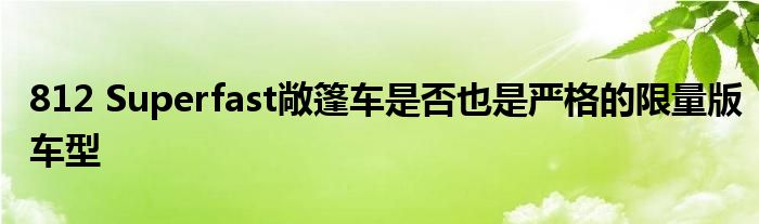 是的,最近有一些一次性客戶訂單型號(hào),但據(jù)我們所知,最后一款V12敞篷版法拉利是基于F12的F60America。這是一個(gè)特別版,只有10個(gè)制作。尚未確認(rèn)812 Superfast敞篷車是否也是嚴(yán)格的限量版車型,或者是一個(gè)合適的系列生產(chǎn)車型。