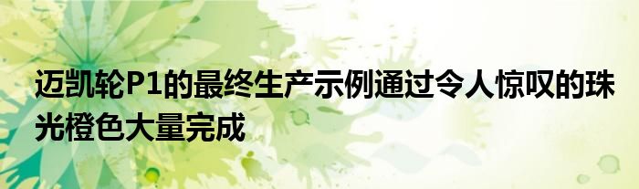 邁凱輪P1的最終生產示例通過令人驚嘆的珠光橙色大量完成,這是通過獨特的著色工藝實現的。顏色呼應了第64輛和最后一輛邁凱倫F1公路賽車(第075號底盤)的陰影,該靈感不斷啟發了今天在邁凱輪汽車系列中可用的Volcano Orange。它在原始碳纖維編織中具有微妙的造型元素,其飾面僅在分流器,散流器和沿下車身的空氣動力學葉片的外部可見,而超輕量級車輪則采用銀飾。