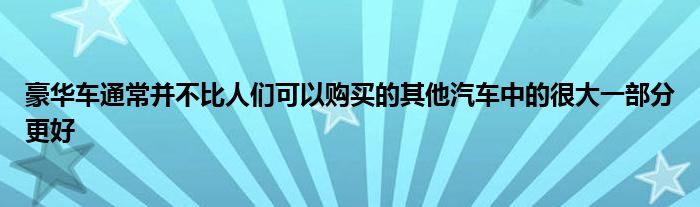 對于人們來說,重要的是要注意,從經(jīng)驗上講,豪華車通常并不比人們可以購買的其他汽車中的很大一部分更好。根據(jù)與它們相關(guān)的品牌名稱,其中許多甚至只能被識別為豪華車。否則,人們將很難區(qū)分他們和市場上許多其他漂亮的汽車。