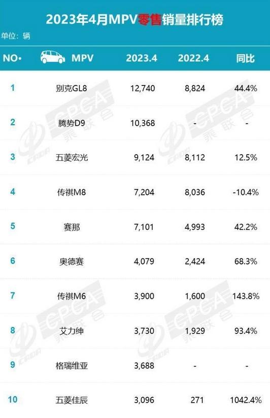 根據(jù)乘用車市場信息公布,2023年4月份MPV細(xì)分市場的銷量持續(xù)增長,為該市場注入了新的活力。MPV細(xì)分市場累計銷售新車達(dá)到9.6萬輛,同比增長73%。而今年1-4月的累計銷量更是達(dá)到了33.8萬輛,同比增幅高達(dá)14.8%。相對于SUV和轎車細(xì)分市場,MPV細(xì)分市場整體漲幅令人欣喜。