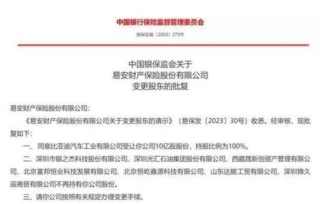 比亞迪最近豪擲36億收購(gòu)易安財(cái)險(xiǎn),該舉措未來可能延伸拓展自有車險(xiǎn)業(yè)務(wù),成為行業(yè)焦點(diǎn)。市場(chǎng)對(duì)此事給出了不同觀點(diǎn)。由于比亞迪在收購(gòu)后需要注入大量資金,該公司的股票在當(dāng)天收跌1.54%。