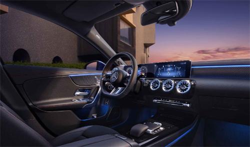 內(nèi)飾方面,新款奔馳長軸距A級轎車提供了多款配置選擇。可選配Nappa皮革包覆的全新多功能方向盤,內(nèi)飾配色有鼠尾草灰、黑色和可可棕色三種選擇,還有兩款不同樣式的碳纖維裝飾件。此外,新車還搭載64色氛圍燈、全景天窗和Burmester環(huán)繞立體聲音響系統(tǒng)。