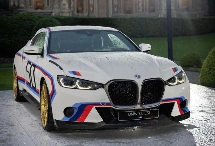寶馬3.0 CSL的車身采用了大量的碳纖維材質,整體設計語言與寶馬G82 M4相似,但在細節方面有很大的差異。雙腎格柵的尺寸較小,看起來沒有那么夸張;大燈的樣式近乎一致;下方包圍兩側有兩個圓形進氣口,是對經典車型的致敬。