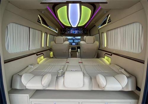 這款MPV的內部配置也令人驚喜。它配備了42寸高清液晶電視,配合高級吧臺和液晶觸控屏,可以輕松調節車內操作。吧臺還配備了隱藏式秘書座椅,讓商務生活更加充實。車頂設計了浩瀚星空頂氛圍燈,可以調節多種顏色的燈光,營造出舒適的氛圍。整車內飾選用了高級麂皮絨窗簾,柔軟舒適。座椅則采用了高級航空座椅,配備通風加熱和按摩功能,并帶有腿托,讓乘坐更加舒適。