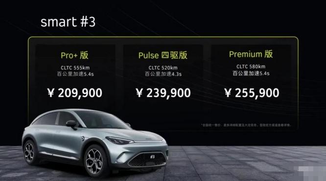 smart精靈#3于6月1日正式上市,共推出4款車型,售價區(qū)間為20.99-28.99萬元。作為smart品牌的第二款純電車型,精靈#3與精靈#1一樣,提供了普通版和高性能BRABUS版兩個版本,由梅賽德斯-奔馳設(shè)計,吉利豪情制造。