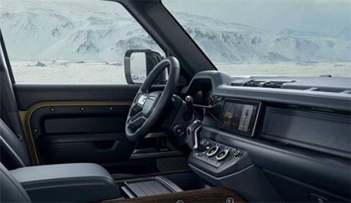 全新路虎衛士的內飾設計非常豪華且硬派,充滿色彩感。方向盤采用復古風格的四幅式設計,儀表盤采用12.3英寸液晶顯示屏,中控大屏采用10英寸懸浮式屏幕,屏幕后方采用內凹式貫穿式裝飾條,整個中控臺框架呈現硬派風格。