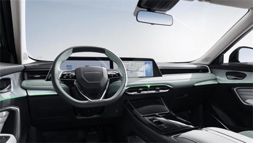 內飾方面采用了平直的線條打造出相對簡約的中控臺,配備雙12.3英寸的雙聯屏和三輻式多功能方向盤。內飾配色素雅,中控臺采用軟性材質包覆,并進行了縫線處理。方向盤采用雙拼配色,座椅采用打孔設計,整體內飾質感不錯。