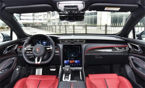 進入內飾設計,紅旗H6的整體布局與紅旗H5相似,但增加了一些運動化的元素,如真碳纖維飾板和翻毛皮材質。此外,多樣的線條勾勒增加了車內的運動氛圍,使紅旗H6比紅旗H5更具強烈的運動感。不過,遺憾的是,紅旗H6并未配備大多數轎跑車型常見的無框車門設計。