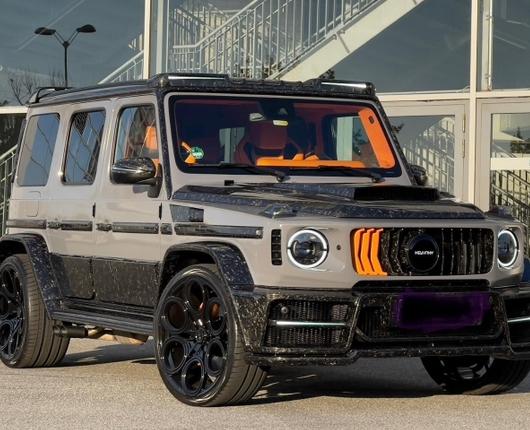 Keyvany最新改裝的梅賽德斯-AMG G 63 Forged G820HP車型給人一種寬大而獨特的視覺感受,宛如一位身披閃亮盔甲的騎士。該車的前后保險杠、備用輪胎罩、擋泥板喇叭口、車身輪廓、引擎蓋以及擋風(fēng)玻璃周圍等約占車身表面45%的部分都采用了鍛造碳纖維附件,展現(xiàn)出非凡的氣質(zhì)。