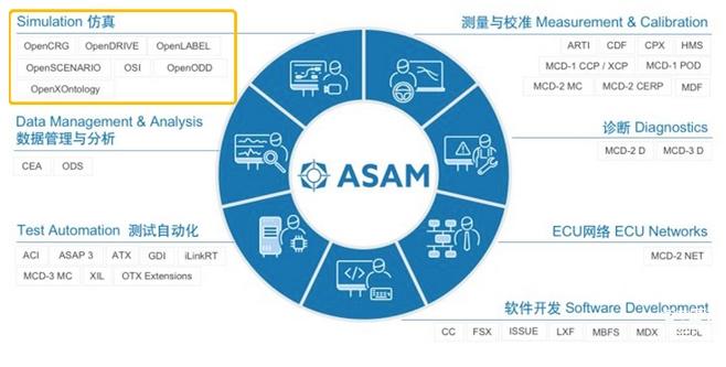 在自動駕駛仿真領域,一個重要的標準是OpenX系列標準,它由ASAM(Automation and Measuring Systems)組織推出,成為世界上最廣泛認可的汽車工業國際標準之一。