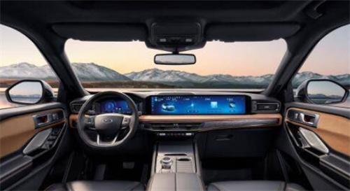 車內(nèi)采用了27英寸高清4K巨幅屏幕和12.3英寸全彩數(shù)字液晶儀表盤,使車廂更加時(shí)尚且充滿科技感。在駕駛輔助方面,探險(xiǎn)者昆侖巔峰版配備了全新的SYNC+ 2.0智行信息娛樂系統(tǒng)和L2級福特 Co-Pilot 360™智行駕駛輔助系統(tǒng),并配備福特首發(fā)的車路協(xié)同系統(tǒng)V2I,為用戶帶來更便捷的智能出行體驗(yàn)。