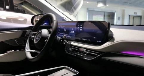 接下來是車輛內飾。我選擇了艾維亞白藍內飾(茉莉真皮),雖然很多人擔心藍白內飾難以打理,容易臟,但我認為在初選時不要讓視覺后悔影響你的決策(藍白真的太和諧了)。至于打理,只要養成良好的駕乘習慣就可以了。中控超大的6K分辨率屏幕讓我仿佛置身于新能源車的體驗中,但屏幕內容同時強調了燃油車的屬性。觸摸屏的感覺與使用華為手機并無差別。