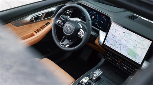 在內飾方面,整體布局沒有變動,提供了三輻式多功能方向盤、全液晶儀表盤、懸浮式中控屏以及電子擋把。前排設計了尺寸較大的儲物槽,支持手機無線充電功能,提升了實用性和便利性。